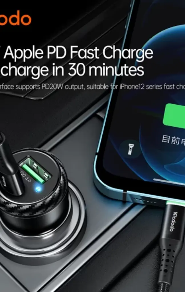 MCDODO 38W PD Fast Car charger (Type-c + QC3.0) LB Series Black